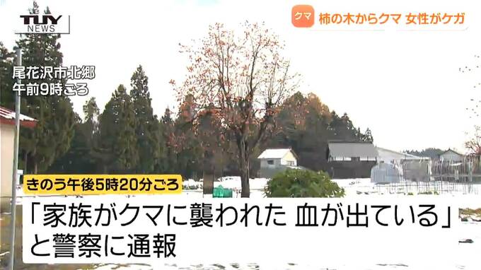 倉内奈津美 記者「午後5時を過ぎ、あたり一面暗くなっている中、当時、女性はこの柿の木の下にいました。すると、柿の木の上から何か落ちてくるような物音を聞いたと言います。その正体は、クマでした」