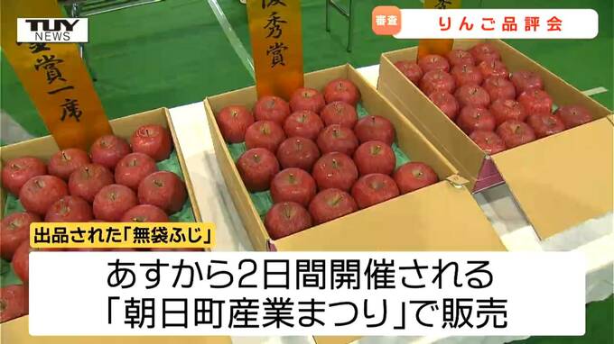 リンゴの町として知られる朝日町では収穫の最盛期を迎えている「無袋ふじ」の品評会が行われました。