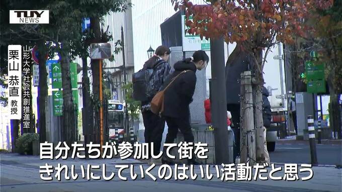 参加者は「道端とかあまり目にしないところにゴミはたまるんだなと。見ようとしないと分からないこと今楽しくゴミ拾いやってます。」山形大学社会共創推進室・栗山恭直教授「自分たちが参加して街をきれいにしていくのはいい活動だと思う。今後も続けていきたい。」