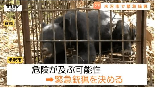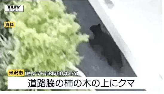 米沢市によりますと、21日の午前8時50分ごろ、米沢市芳泉町で住民がクマを目撃しました。クマは体長75センチで道路わきの柿の木に登っていたということです。