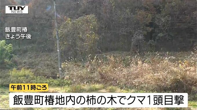 飯豊町によりますと、きょう午前11時ごろ、飯豊町椿地内にある柿の木にのぼっているクマ1頭が目撃されました。