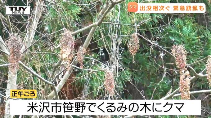 きょう正午ごろ、米沢市笹野で、クマがくるみの木に登っているのを住民が見つけたということです。