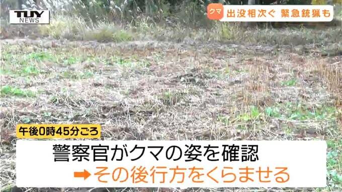 午後0時45分ごろに警察官がクマの姿を確認しましたが、その後クマは行方をくらませたということです。