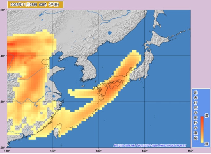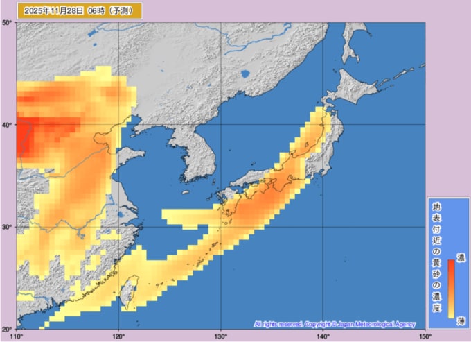 【黄砂情報】28日は日本列島の広範囲で黄砂か…いつどこに、どのくらい飛んでくる? 黄砂を上空から見たデータで確認 気象庁発表