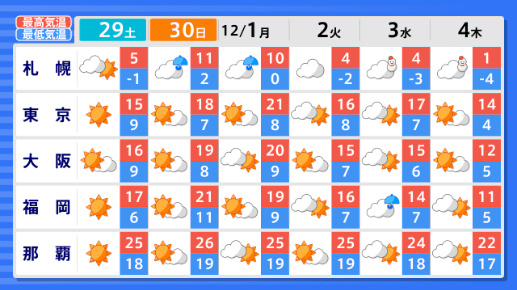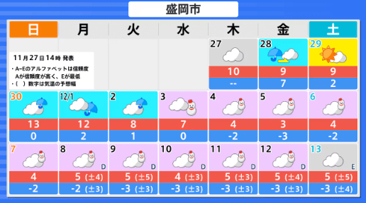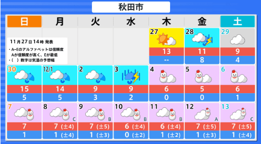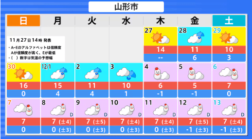 【早期天候情報】東北地方は12月4日以降かなりの低温と大雪 この時期としては "10年に一度レベル" 平均気温平年差-2.1℃以下 今後の天気を画像で 気象庁 2025年11月27日(木) 15:36 国内 ■東北の今後の天気は 画像はTBS NEWS DIG Powered by JNNより 画像ありの記事を最初から https://newsdig.tbs.co.jp/articles/-/2314233?display=1