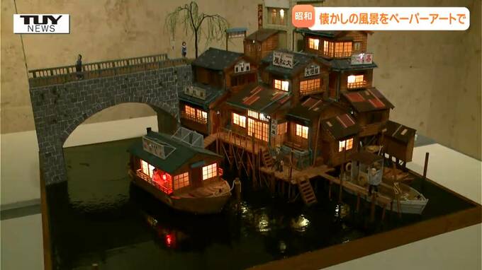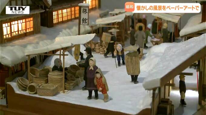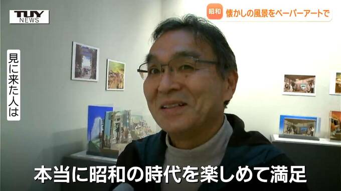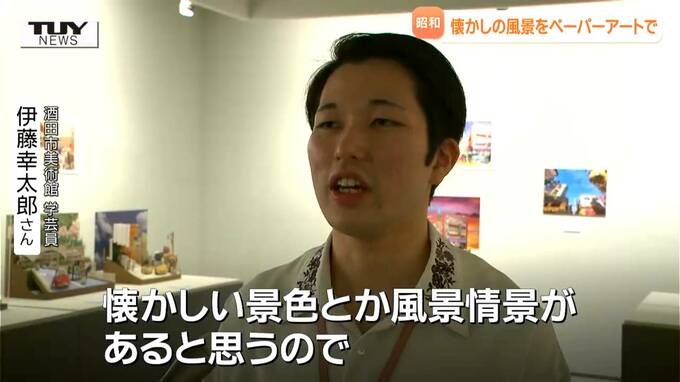 酒田市美術館 学芸員 伊藤幸太郎さん「ペーパーアートとジオラマの表現方法だったり、二人の見ている世界観の違いを感じられるところが今回の見どころ。昭和を知っている世代の方は今は観られない懐かしい景色とか風景情景があると思うので、そういった雰囲気を楽しんでいただければ」