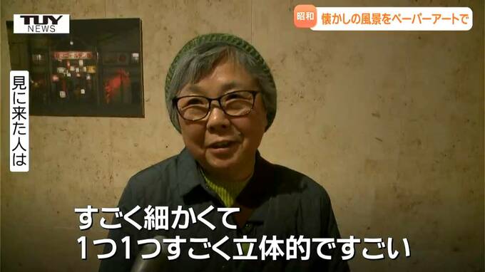 見に来た人「すごく細かくて1つ1つすごく立体的ですごい。懐かしくて子どもの頃を思い出す。最初に見た作品が街の感じがよく出ていて自分も町場の生まれだから、それを見て素敵だなと思った」
