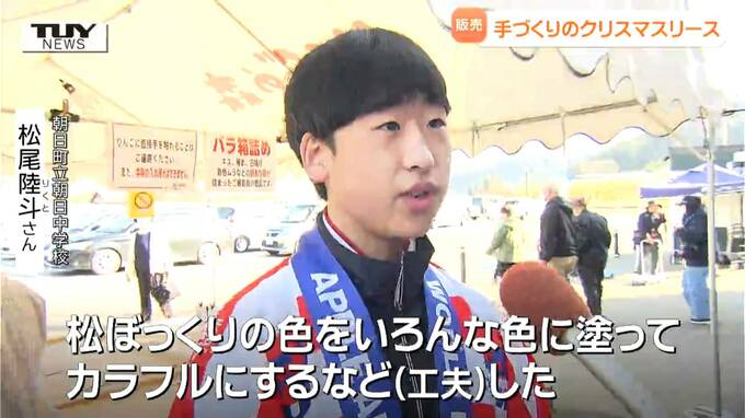 朝日町立朝日中学校 松尾陸斗さん「松ぼっくりの色をいろんな色に塗ってカラフルにするなど(工夫)した。すごく大変でした」