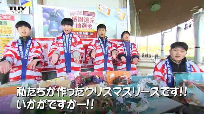 生徒「私たちが作ったクリスマスリースです!!いかがですかー??」