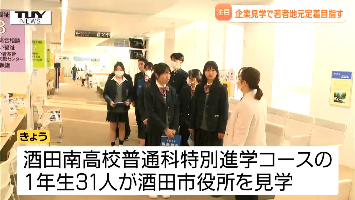 自治体が人口流出に頭を悩ませる中、地元企業の見学を通して若者の地元定着を促進させようと、きょう酒田市が高校生を対象とした職場の見学ツアーを行いました。