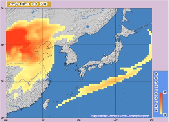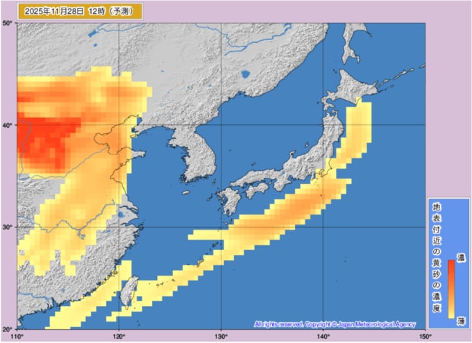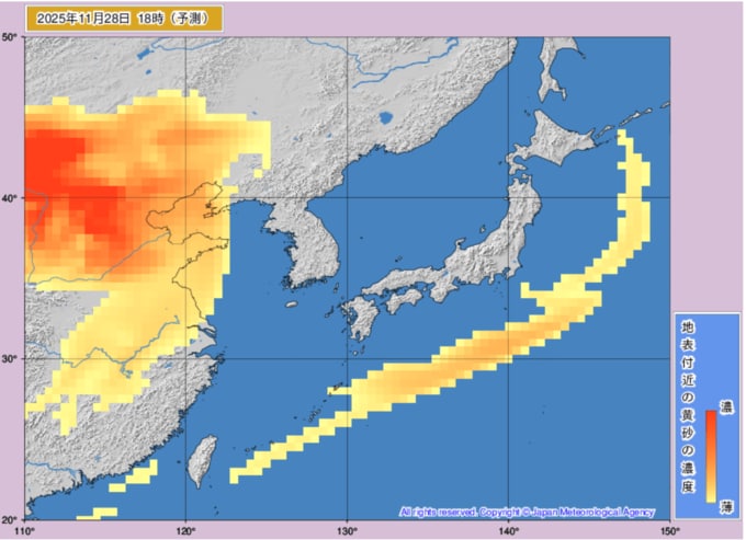 【黄砂情報】日本列島に黄砂飛来の予想 12月1日までの黄砂シミュレーション 1日は日本列島の広範囲に飛来か...黄砂を上空から見たデータで確認 気象庁発表 2025年11月28日(金) 11:59 国内 ■28日