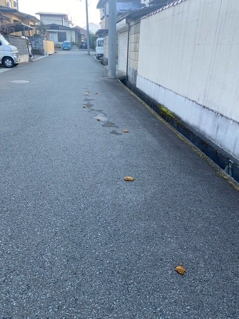 30日の朝に山形市内で見つかったクマのふんです。しかもタテに長く、痕跡が続いています。家を出て突然こんなものがあったら、びっくりしてしまうでしょう。