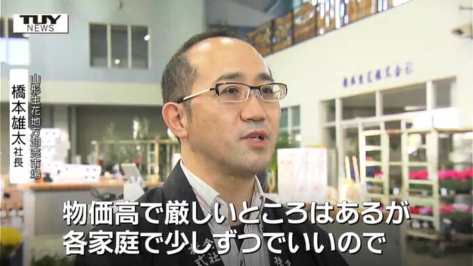 山形生花地方卸売市場 橋本雄太 社長「物価高で厳しいところはあるが各家庭で少しずつでいいので正月気分を味わってもらって飾っていただきたい」