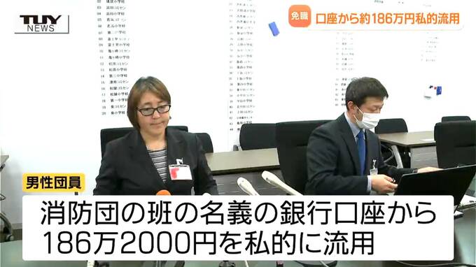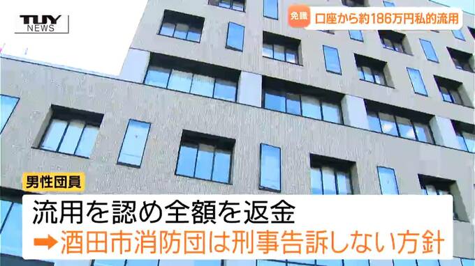酒田市消防団の40代の男性団員が、消防団の銀行口座から186万円余りを私的に流用したとして消防団が団員を懲戒免職としました。