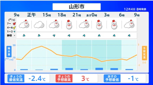 【雪情報】どこにどれくらい降る? 山形県では5日昼前にかけて大雪に注意・警戒 降雪量は山沿い70センチ、平地でも40センチ予想 場合によっては警報級の大雪の可能性も 山形・全国の天気を画像で 気象庁 2025年12月4日(木) 10:55 国内 ■山形・全国の天気を画像で 画像はTBS NEWS DIG Powered by JNNより 画像ありの記事を最初から https://newsdig.tbs.co.jp/articles/-/2327788?display=1