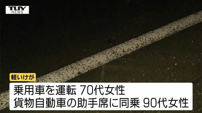 この事故で普通乗用車を運転していた70代の女性と普通貨物自動車の助手席に乗っていた90代の女性が軽いけがをしたということです。