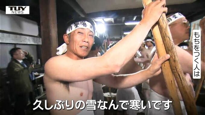 きょう山形県米沢市で五穀豊穣への感謝と祈りをささげる師走の伝統行事、「裸もちつき」が行われました。
