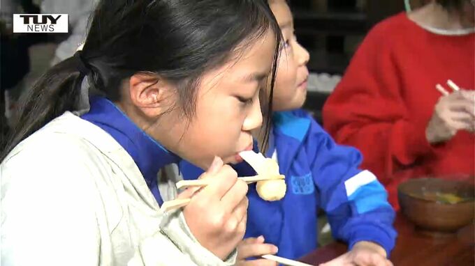 およそ20人がかりでつき上げられたもちはとても柔らかく、喉越しも抜群です。
