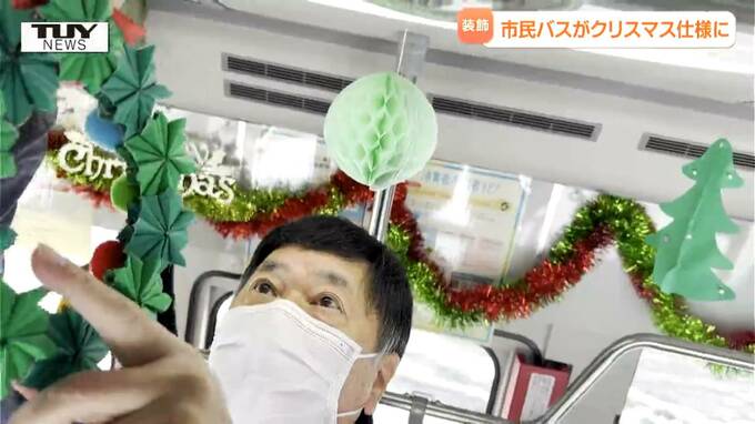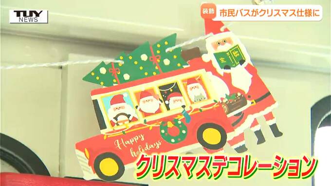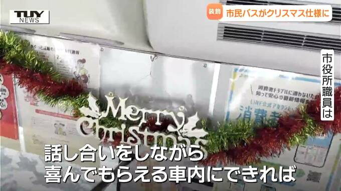 東根市では市民バスに親しんでもらい利用拡大につなげようと、5年前からこの時期にクリスマスの装飾をほどこした市民バスを運行しています。