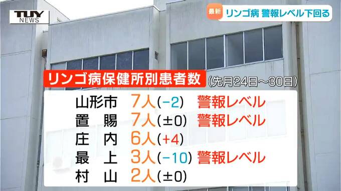 保健所別では、山形市で7人、置賜で7人、最上で3人など3つの保健所で警報レベルが続いています。