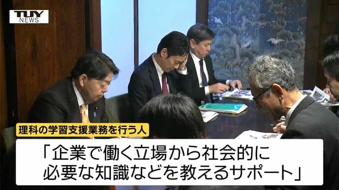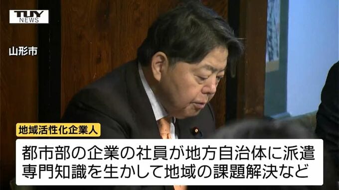 山形市は、地域活性化企業人を積極的に活用していて、先月1日時点で8人が働いています。このうちきょうは、4人が意見交換会に参加し、総合化学メーカーから派遣され、理科の学習支援業務を行う人は、「学校教育の中身が濃いため、先生のやりたい授業ができていないからこそ、企業で働く立場から、社会的に必要な知識などを教えるサポートをしていきたい」などと林総務大臣に報告していました。