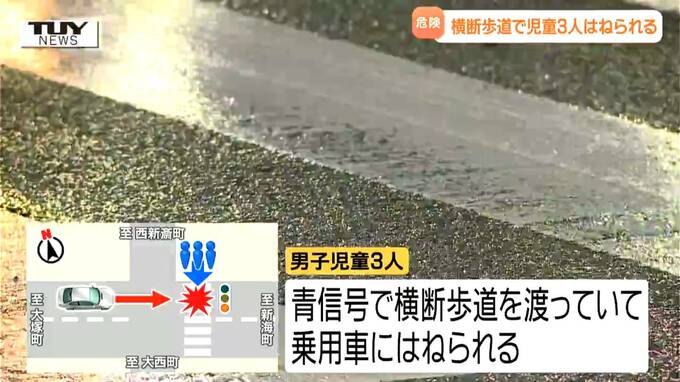 警察によりますと、当時、信号機は男の側が赤だったとみられ、男が前方をよく確認しないまま車を運転し、児童3人とぶつかったとみられています。