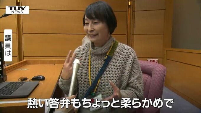 議員「山辺のニットです。この形が素敵だなと思って。熱い答弁もちょっと柔らかめで」