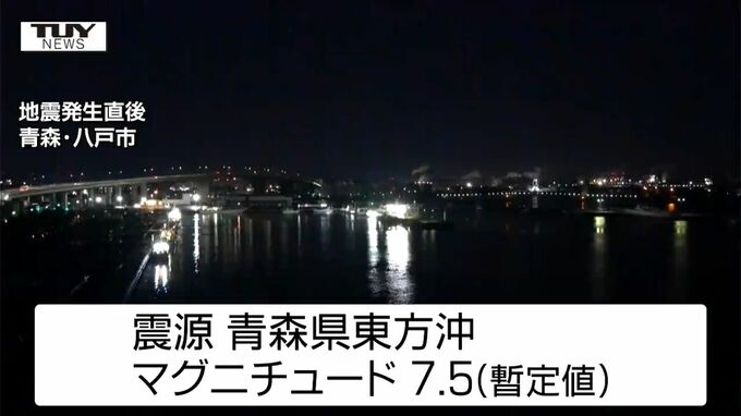 震源は青森県東方沖で、地震の規模を示すマグニチュードは暫定値で7.5となっています。