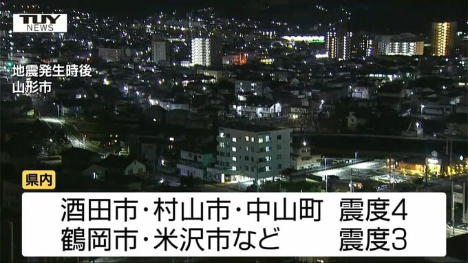 この地震で、県内では酒田市、村山市、中山町で震度4、鶴岡市や米沢市など広い範囲で震度3を観測しました。