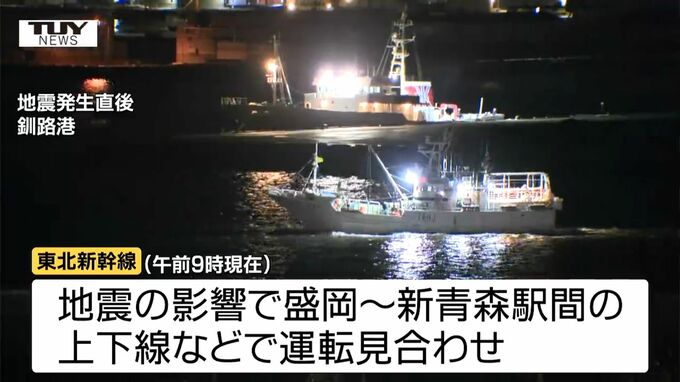 東北新幹線では地震の影響で盛岡~新青森駅間の上下線で運転見合わせが発生するなどしていて、JRでは、最新の運行情報を確認してほしいと呼びかけています。