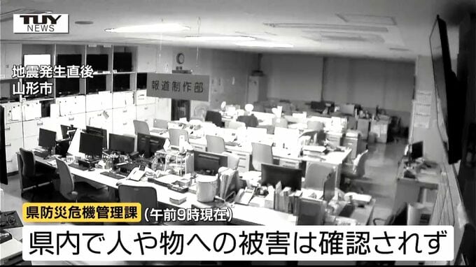 県内では、酒田市、村山市、中山町で最大震度4を観測しましたが、これまでの所、人的、物的被害は確認されていないということです。