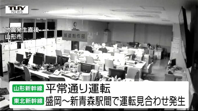 また、JR東日本によりますと山形新幹線は始発から平常通り運転しているということですが東北新幹線では地震の影響で盛岡~新青森駅間の上下線で一時、運転見合わせが発生するなどしました。