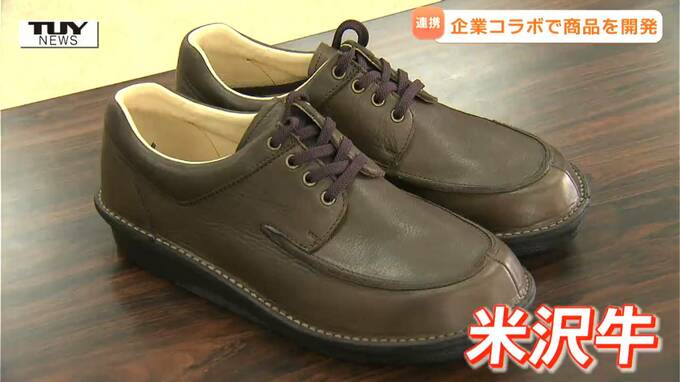 「なぜ米沢牛の革製品がないのか」という疑問から生まれたこの革靴。他の牛革と比べて柔らかいのが特徴です。
