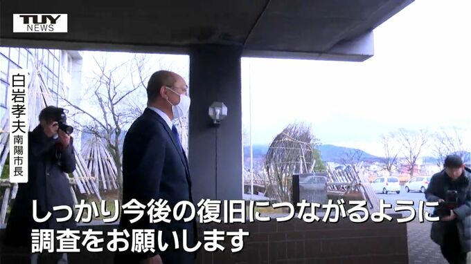 南陽市 白岩孝夫 市長「しっかり今後の復旧につながるように調査をお願いします。気をつけて行ってきてください」