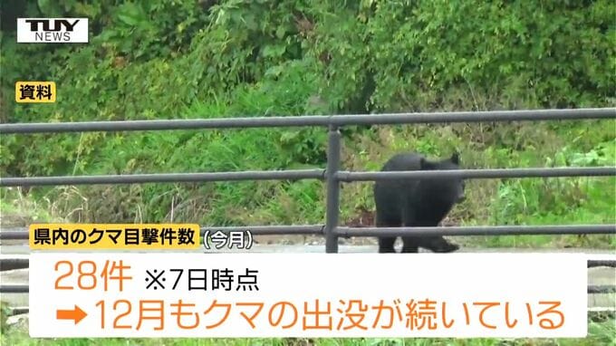 県によりますと、県内の今月のクマの目撃件数は7日時点で28件と、12月に入ってもクマの出没が続いています。