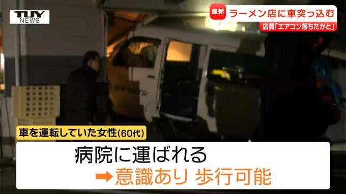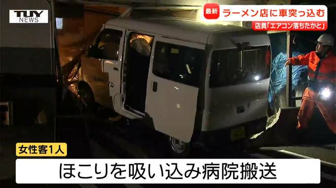 きょう午後、山形市のラーメン店に軽ワゴン車が突っ込む事故があり車を運転していた女性と客が病院に運ばれました。
