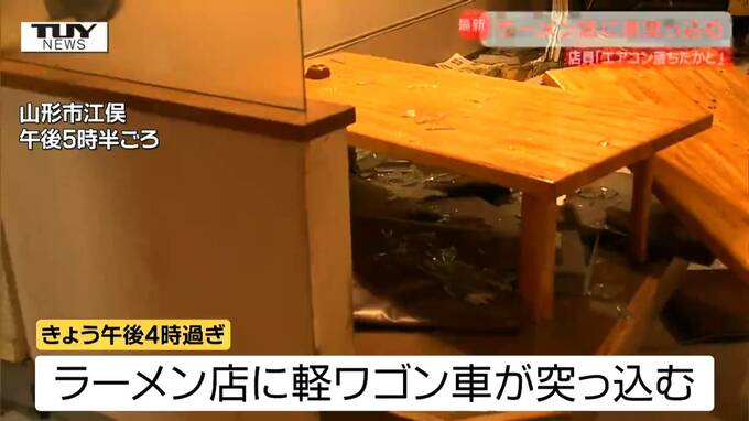 警察や消防などによりますときょう午後4時過ぎ山形市江俣でラーメン店に軽ワゴン車が突っ込んだということです。