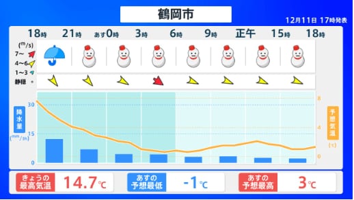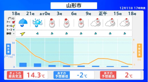 【山形天気】庄内の海上では雪を伴った北西の強い風に注意・警戒 12日未明から朝にかけて 山形・全国の天気を画像で 気象庁 2025年12月11日(木) 20:53 国内 ■山形・全国の天気(画像) 画像はTBS NEWS DIG Powered by JNNより 画像ありの記事を最初から https://newsdig.tbs.co.jp/articles/-/2343250?display=1