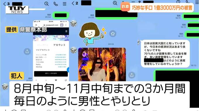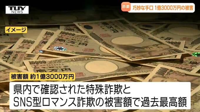 男性の被害額はおよそ1億3000万円で、これは、県内で確認された特殊詐欺とSNS型ロマンス詐欺の被害額で過去最高額となります。