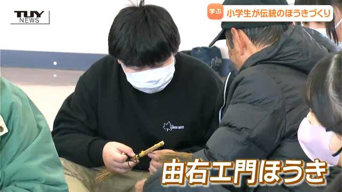 きょう、庄内町の余目第四小学校の6年生が挑戦したのは、地域に伝わる伝統品、「由右エ門ほうき」作りです。