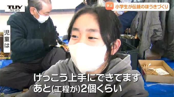 児童「けっこう難しいが、地域の人達が教えてくれるので簡単に作れている」