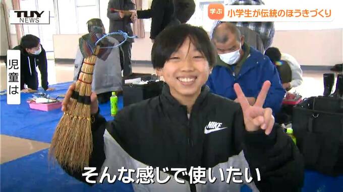 きょう作られたほうきは学校に展示されたのち、児童たちが小学校の思い出として持ち帰るという事です。