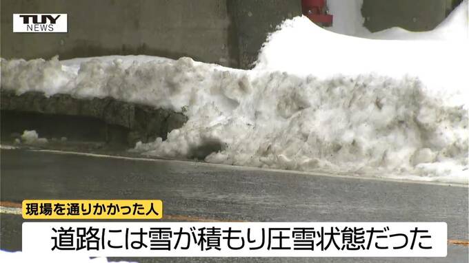 同じころ、現場を通りかかった人の話しによりますと、道路には雪が積もり、圧雪状態だったということです。