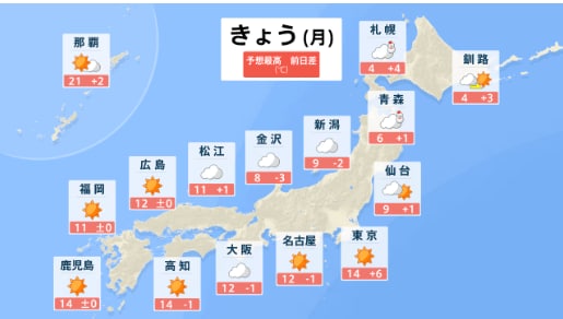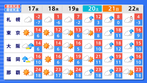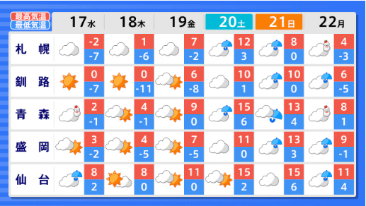 【2週間気温予報】東北地方の向こう2週間の気温は高い日が多い予報 20日頃からはかなり高くなる見込み 東北・全国の天気を画像で 気象庁 2025年12月15日(月) 16:17 国内 ■東北・全国の天気を画像で 画像はTBS NEWS DIG Powered by JNNより 画像ありの記事を最初から https://newsdig.tbs.co.jp/articles/-/2348733?display=1