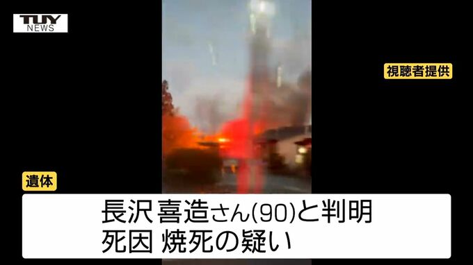 警察によりますと、この遺体はこの家の住人で連絡が取れなくなっていた長沢喜造さん(90)であることがわかったということです。死因は焼死の疑いとされています。