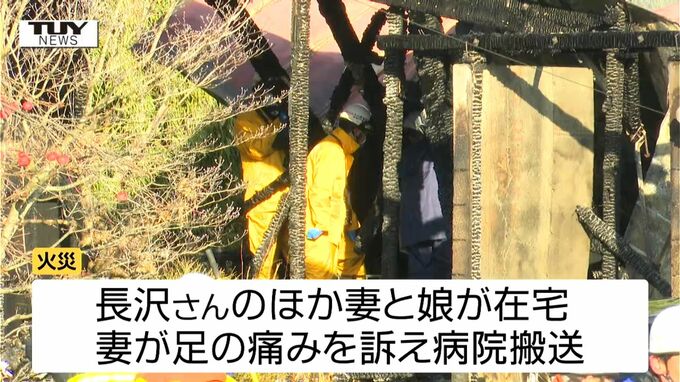 この火災では長沢さんのほか妻と娘が住宅にいて、逃げたものの妻が足の痛みを訴え病院に運ばれていました。