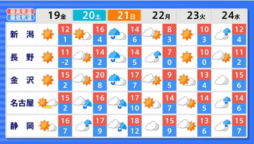 【早期天候情報】関東甲信地方では12月21日頃~「この時期としては10年に1度程度」の著しい高温となる可能性 気象庁発表 全国の天気を地方ごとに 2025年12月17日(水) 15:01 国内 ■全国の天気を地方ごとに(画像) 画像はTBS NEWS DIG Powered by JNNより 画像ありの記事を最初から https://newsdig.tbs.co.jp/articles/-/2353720?display=1