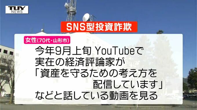 警察によりますと今年9月上旬、山形市の70代の女性はYouTubeで実在の経済評論家が「資産を守るための考え方を配信しています」などと話している動画を見たということです。