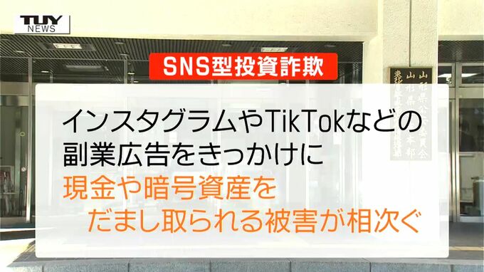 県内ではインスタグラムやTikTokなどに掲載された副業広告をきっかけに現金や暗号資産をだまし取られるSNS型投資詐欺の被害が相次いで確認されていて、警察が注意を呼び掛けています。