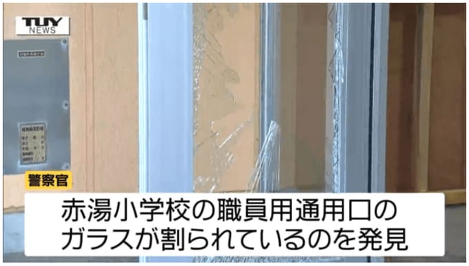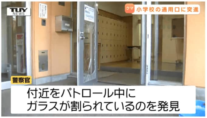 同じ時間帯に小学校の近くでクマの目撃情報があり、警察官が付近をパトロールしていたところ、ガラスが割られているのを発見しました。